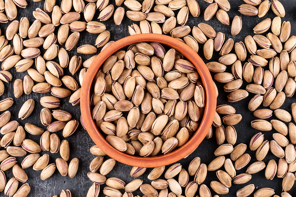 Pistachios are one of the most nutritious and beneficial nuts, rich in protein, fiber, vitamin B6, antioxidants, and healthy fats. This valuable nut helps improve heart health, reduce bad cholesterol (LDL), and increase good cholesterol (HDL). Additionally, due to its high antioxidant content, it protects the body’s cells from oxidative damage. Consuming pistachios can also aid in weight control, as their protein and fiber content increases the feeling of satiety. Moreover, pistachios have a positive effect on brain function, helping to enhance memory and reduce stress.